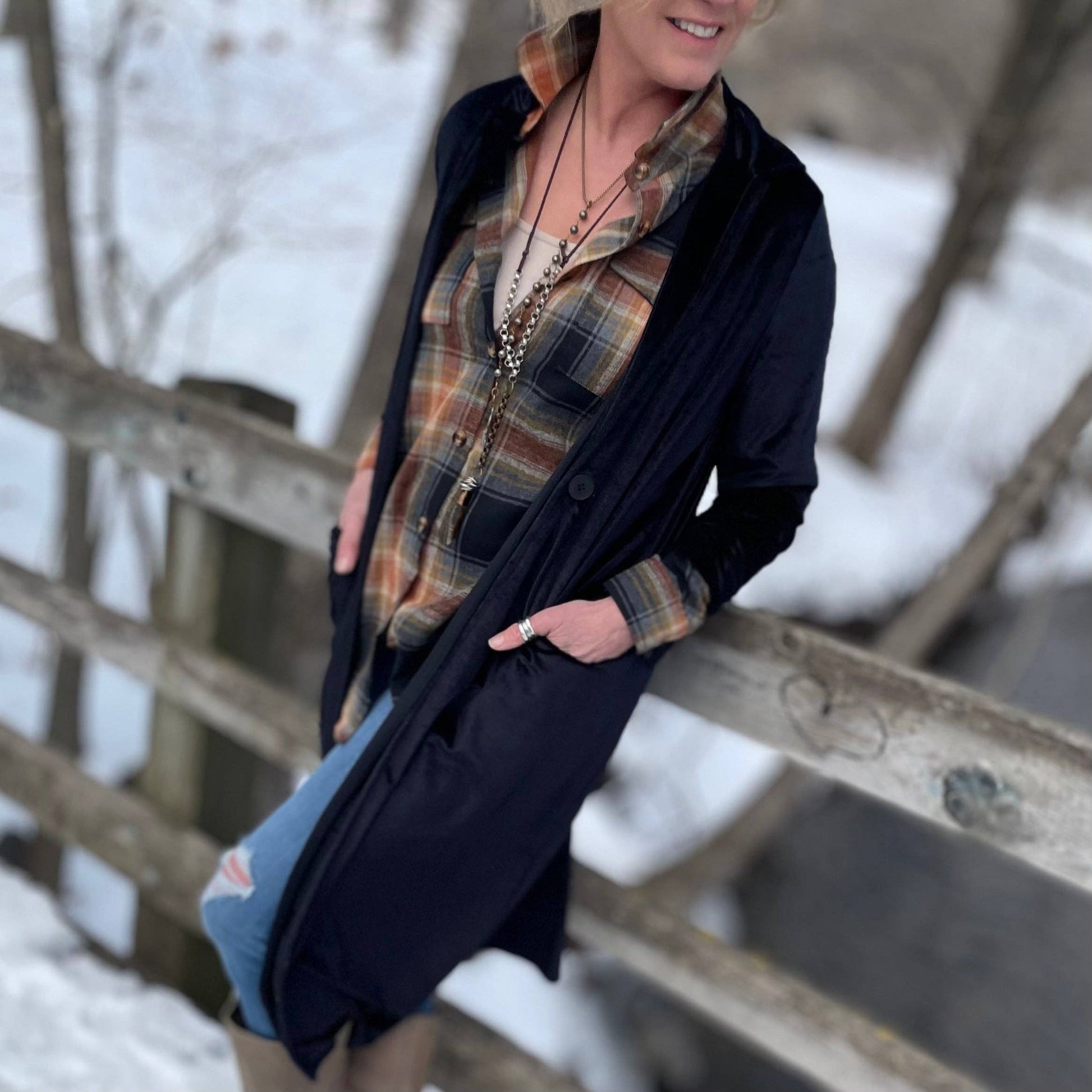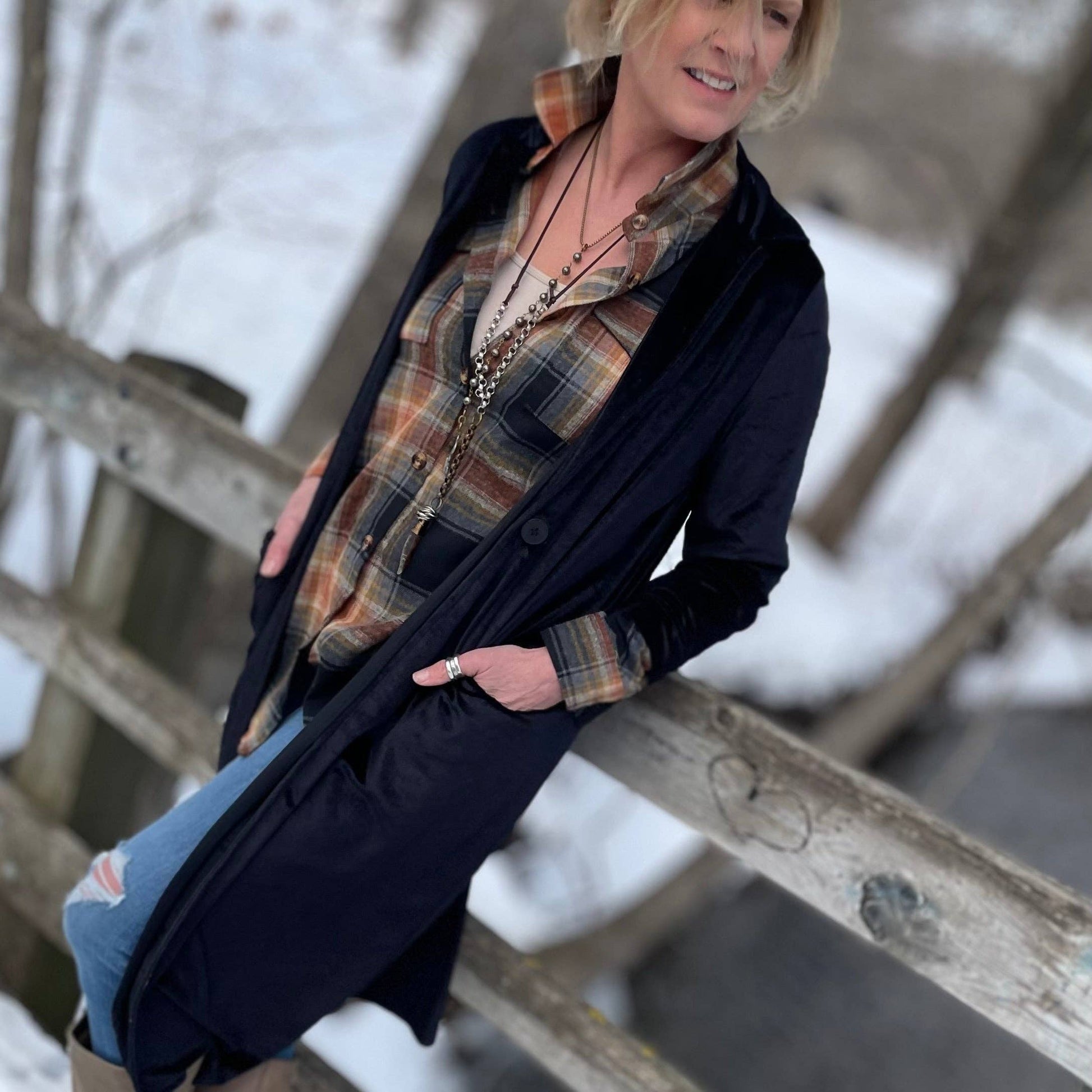 Black Velvet Duster Coat