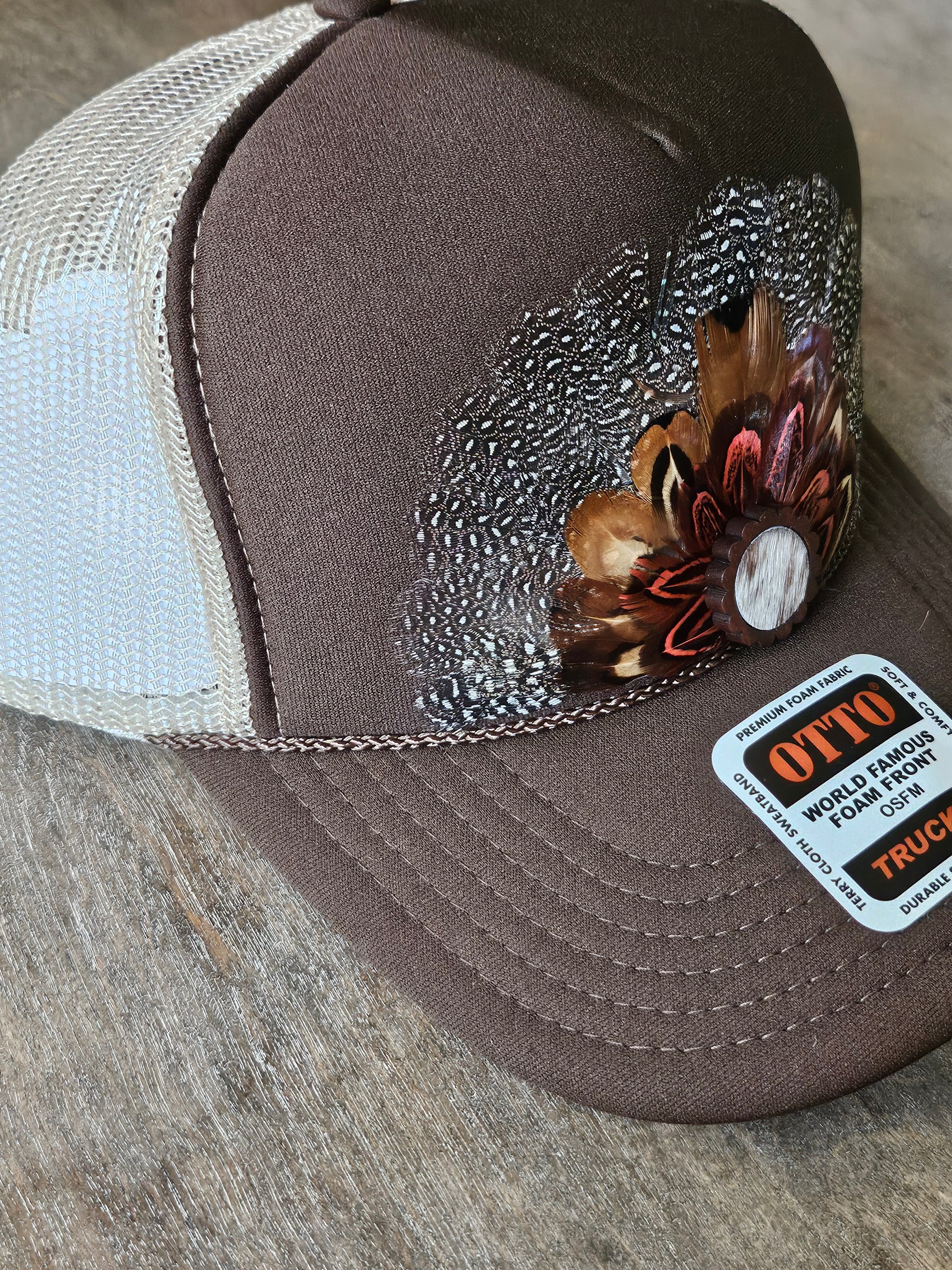 This custom trucker hat features a feather fan crown, allowing for a unique and personalized look. With its high-quality materials and customizable design, this trucker hat is perfect for anyone looking to make a statement. Stay stylish and comfortable with our Feather Crown Custom Trucker Hat.