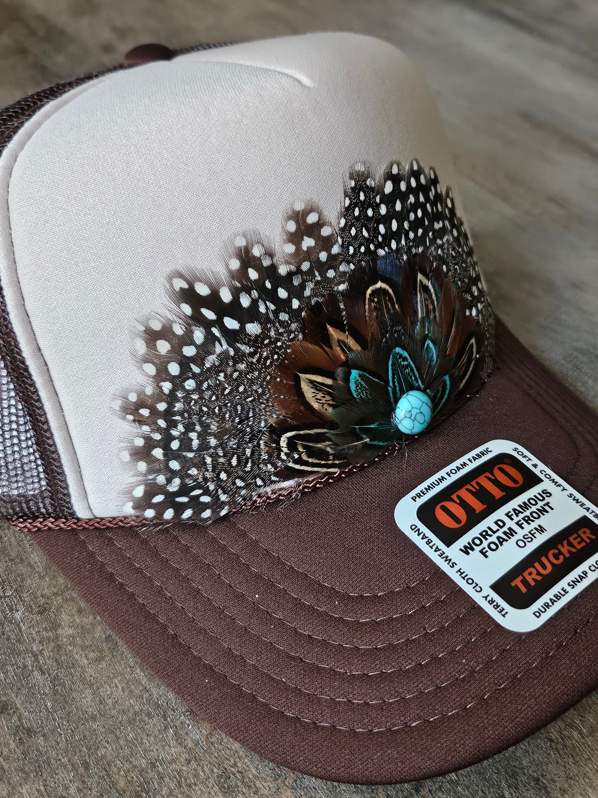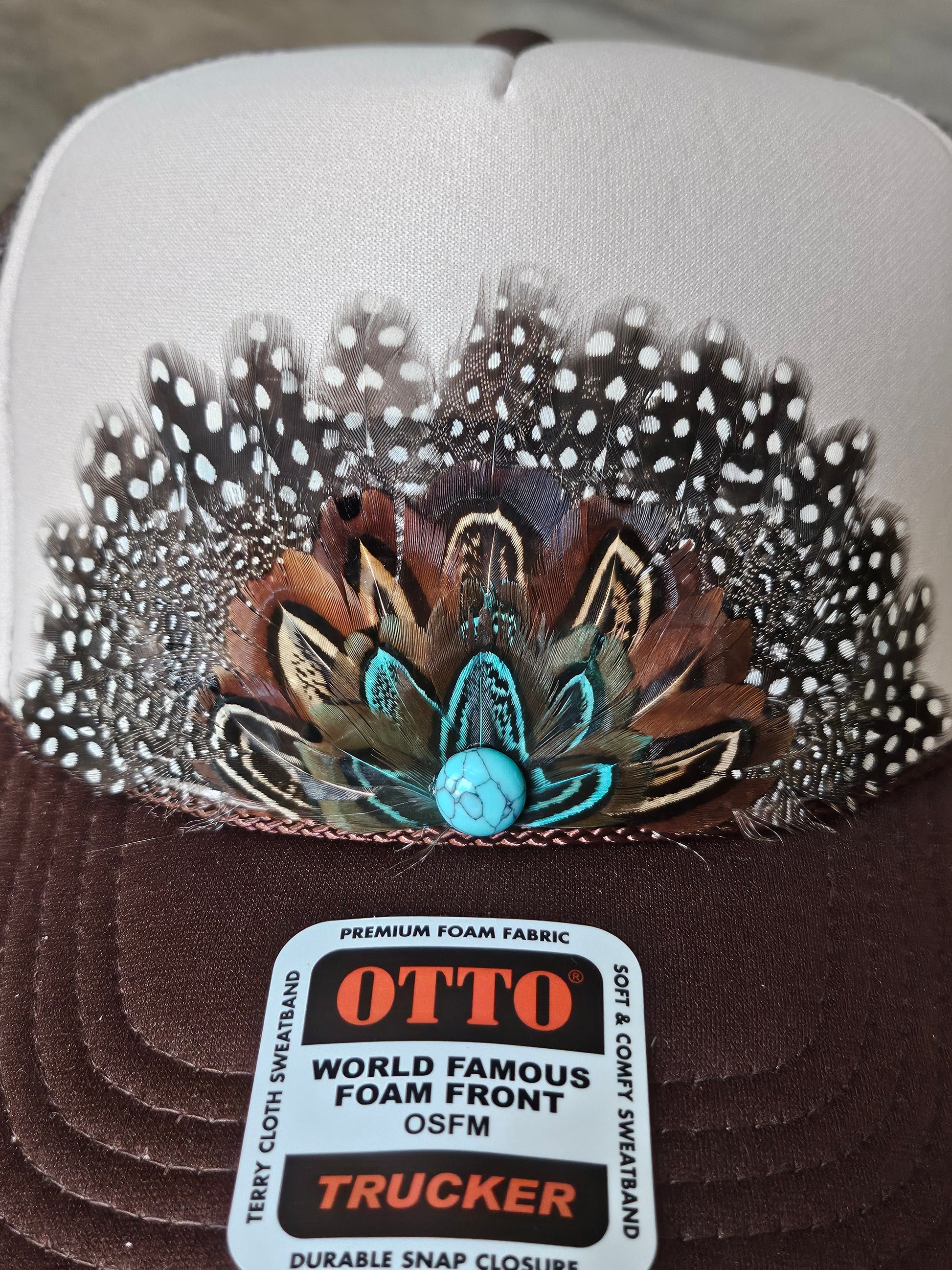 This custom trucker hat features a feather fan crown, allowing for a unique and personalized look. With its high-quality materials and customizable design, this trucker hat is perfect for anyone looking to make a statement. Stay stylish and comfortable with our Feather Crown Custom Trucker Hat.
