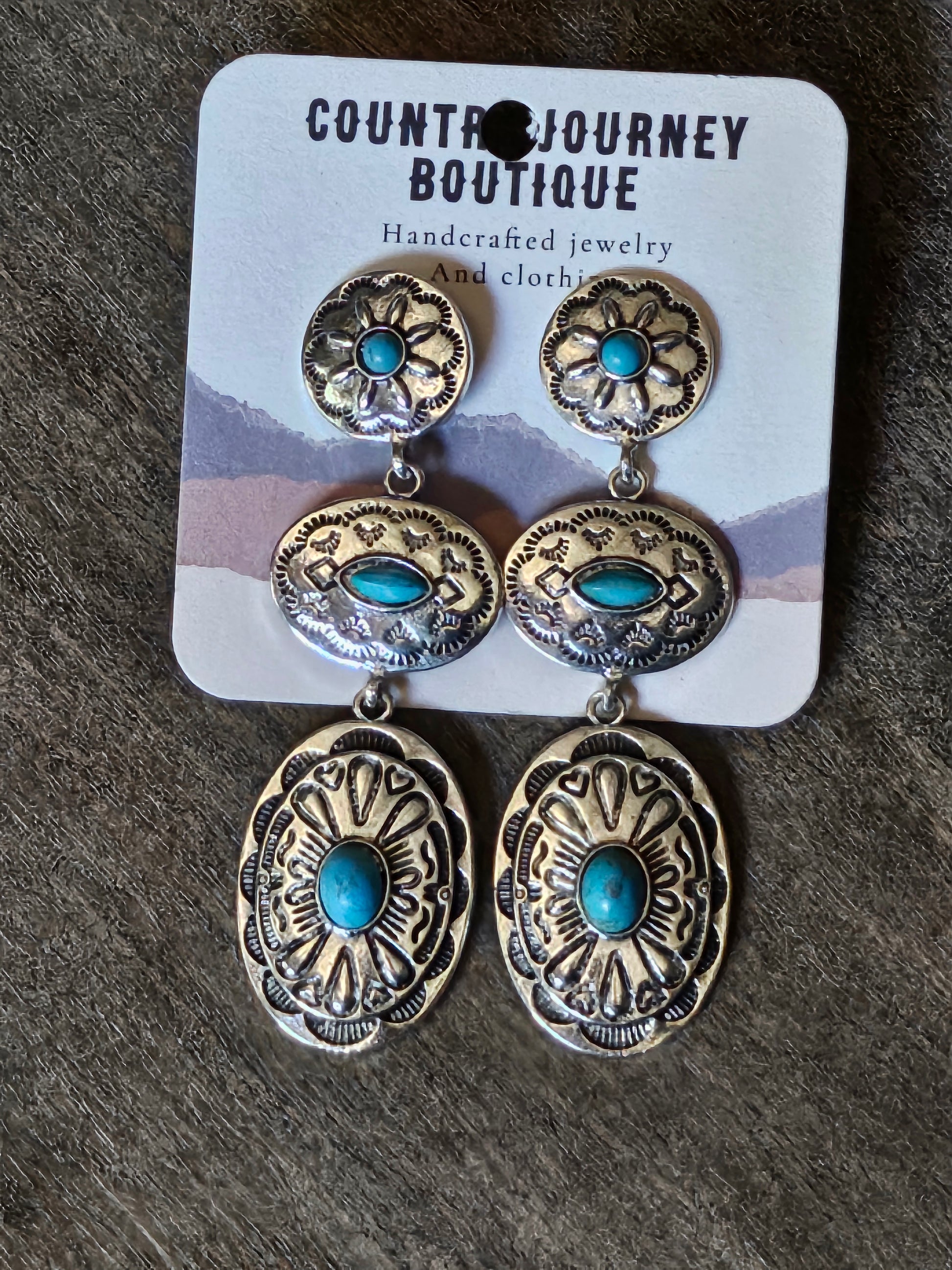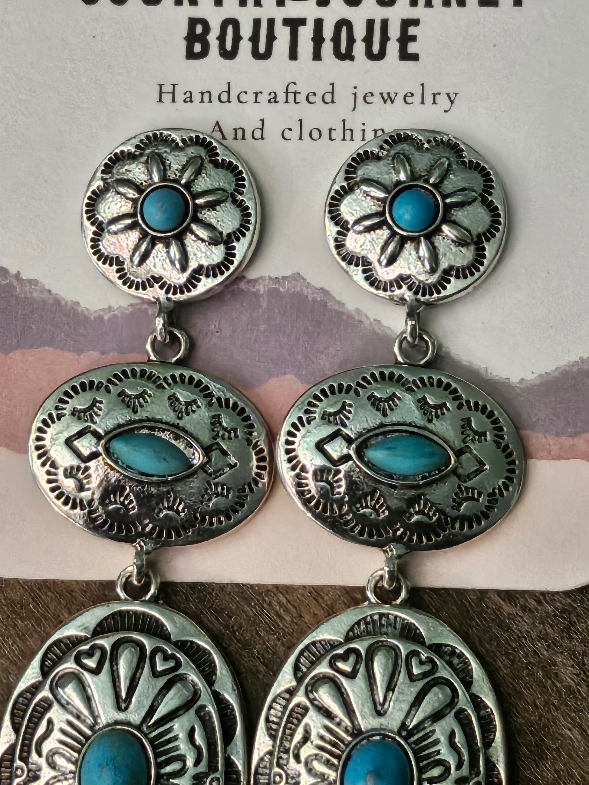 Silver Western concho turquoise earrings