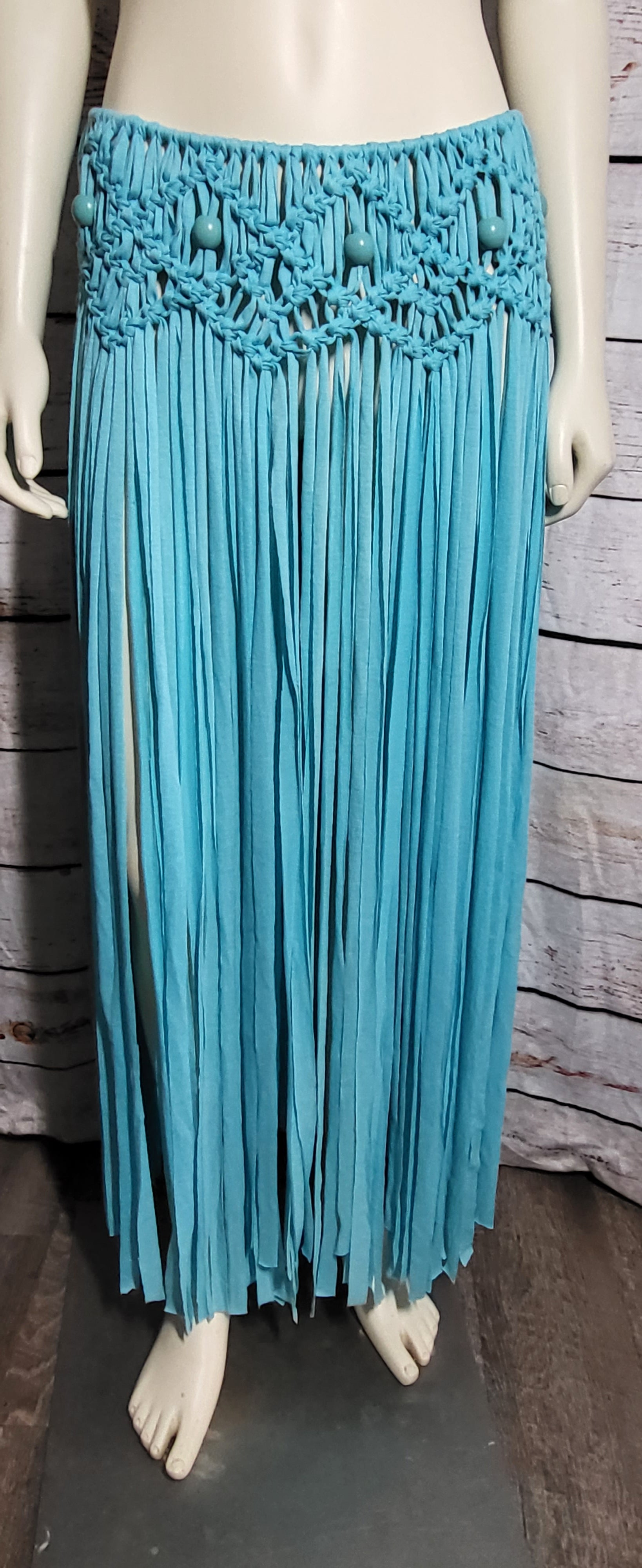 Turquiose Macreme Beach skirt with wooden beads