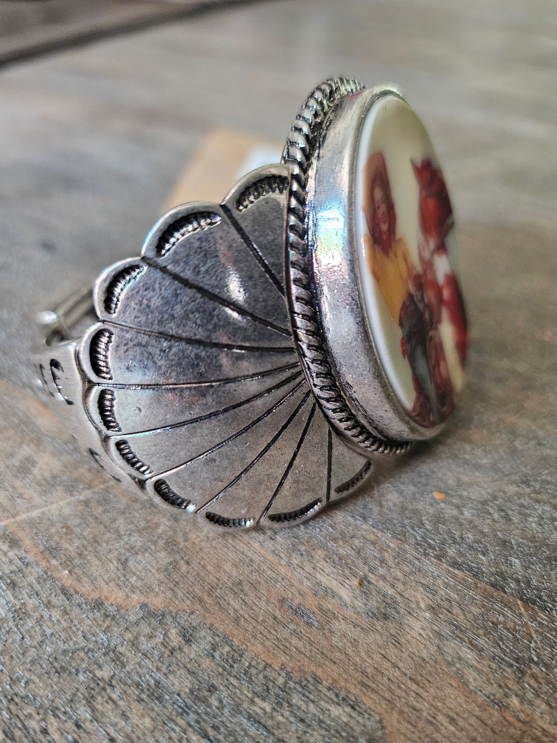 Western Vintage Silver Cowgirl Portrait Cuff Stretch Bracelet
